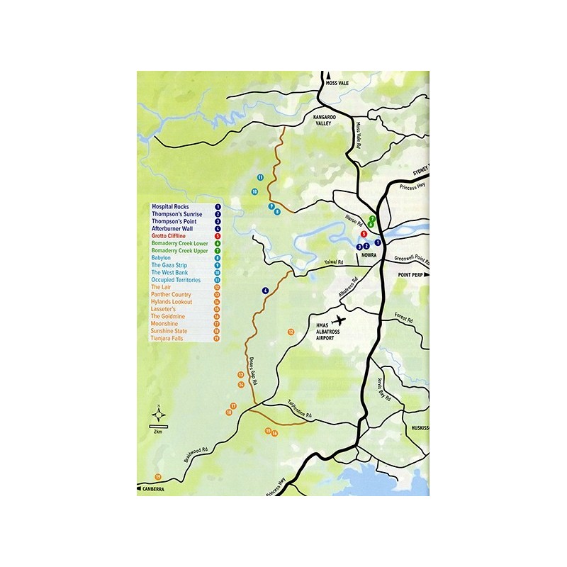 Das bekannteste Klettergebiet bei Sydney sind sicherlich die Blue Mountains, doch südlich der australischen Hauptstadt sind in und rund um die Stadt Nowra auch einige richtig gute Felsen zu finden. Diese sind zwar nicht so bekannt, aber mit 1500 Routen kann man nicht mehr von einem kleinen Gebiet sprechen. Viele der Routen sind steil, sehr steil und führen durch sehr gut strukturierten Fels. Aber nicht nur schwierige Routen sind vorhanden, sondern auch in den gemäßigteren Graden ist ein großes Betätigungsfeld zu finden. Auch wenn in dem Gebiet schon lange geklettert wird, sind viele Wege erst in den letzten Jahren entstanden.