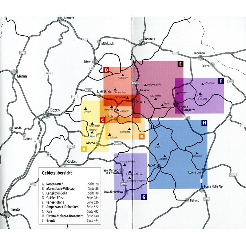 Eingeteilt in 9 Regionen werden 189 Routen der Dolomiten detailliert beschrieben und mit superexaktem Topo dargestellt. Darüber hinaus ist jede Route in einem aussagekräftigen Wandbild eingezeichnet. Das Beste vom Besten sozusagen. Der Schwerpunkt liegt auf den klassischen, gängigen Klettereien, die sich über Jahrzehnte hinweg als die besten Klettereien der Dolomiten herauskristallisiert haben. Die gebotenen Schwierigkeiten verteilen sich dabei zu gleichen Teilen auf die Schwierigkeitsgrade 4 bis 7, eine Handvoll Dreier und Achter schließen das Spektrum nach unten und oben ab. Wer bisher wegen der oft anspruchsvollen Absicherung die Dolomiten schweren Herzens gemieden hat, dem bietet der neue Führer eine absolut zuverlässige Planungsgrundlage, und in den Routen selbst die bestmögliche Information.