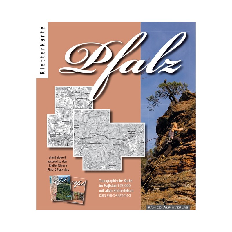Diese topografische Karte im Maßstab 1:25.000 sorgt für einen einmaligen Überblick über die Felsen der Pfalz. Die ideale Ergänzung zur 5. Auflage des Kletterführers Pfalz auf der alle im Kletterführer Pfalz und Kletterführer Pfalz plus beschriebenen Felsen verzeichnet sind. Das macht die Planung deines nächsten Trips ins Reich der Sandsteintürme noch komfortabler.