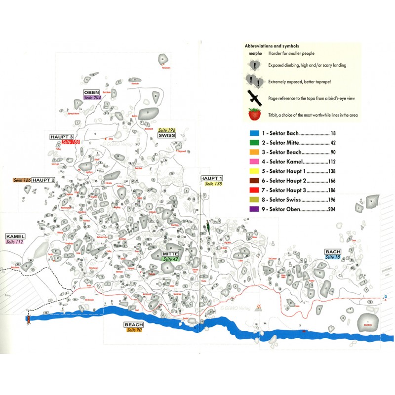 Das Bouldergebiet Magic Wood hat vor einigen Jahren seinen eigenen Führer bekommen. Nun ist bereits die dritte Auflage mit knapp unter 1500 Problemen erhältlich und stellt die vollständigste Sammlung für die beliebten Blöcke in der Zentralschweiz dar. Lageskizzen, allgemeine Infos sowie Zufahrten helfen zunächst einmal sich mit den Besonderheiten des Gebietes vertraut zu machen und die Sekoren zu finden. Fototopos zeigen die genauen Verläufe und kleine Texte enthalten zusätzlich weitere nützliche Informationen. Actionfotos vermitteln einen weiteren Eindruck vom Gebiet, so dass sich der Aufenthalt ohne größere Überraschungen gestalten lässt. Mit dem Kauf eines Exemplars des Buches wird auch jedesmal die Arbeit der IG Magic Wood finanziell unterstützt, die sich in vorbildlicher Weise um den Erhalt des Gebiets kümmert.