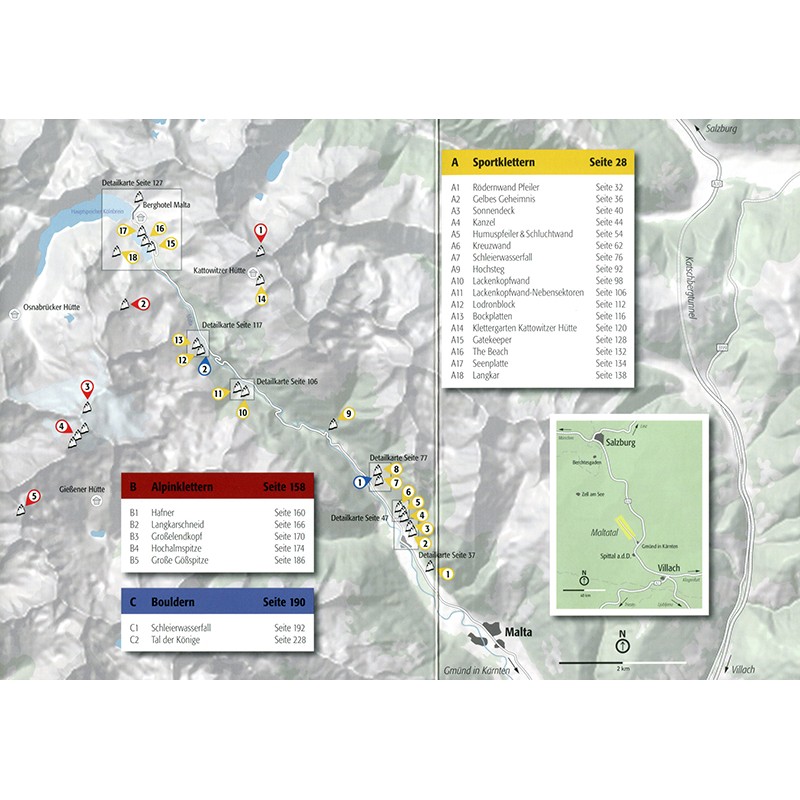 Drei zusätzliche Gebiete vor den Toren des Maltatals verleihen dem Kletterführer eine ganz neue Dimension: Die Breitwand mit ihren Mehrseillängenrouten und der Jungfernsprung - Seaclimbs direkt über dem Wasser - am Millstätter See bilden einen sanften Kontrast zum inneralpinen Maltatal. Und mit dem Danielsberg bei Kolbnitz kann bei Bedarf ein weiterer Malta-Pausentag gefüllt werden.