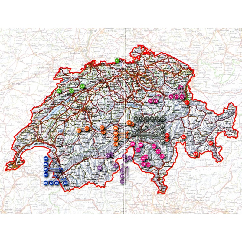 Vorgestellte Regionen: Jura-Schwarzwald, Unterwallis, Oberwallis-Domodossola, Berner Oberland, Zentralschweiz, Alpstein-Ostschweiz, Graubünden, Leventina-Locarno.