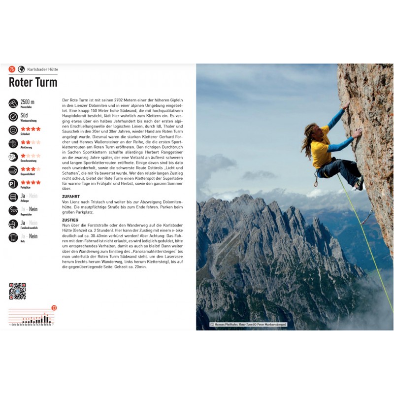 Dies mag zum Einen an der scheinbaren verkehrstechnischen Abgeschiedenheit Osttirols oder vielleicht auch daran liegen, dass es hier keine markante Felswand gibt. Fakt ist, dass auswärtigen Kletterern viele Osttiroler Kletterperlen bis dato verborgen geblieben sind. Dieser Kletterführer verschafft einen Überblick über alle Mehrseillängenwände, vom Laserzkessel oberhalb von Lienz bis zu den steilen Grünschieferwänden im Virgental sowie über die meisten Klettergärten Osttirols, von der Dolomitenhütte bis zum Falkenstein und deren angrenzenden Regionen. Im Anhang werden auf 40 Seiten noch Klettersteige der Region vorgestellt.