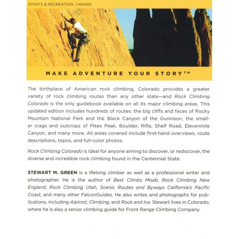 Colorado wird oft als der Geburtsort des amerikanischen Kletterns bezeichnet. Ob diese Aussage einer Überprüfung stand hält, kann man bezweifeln. Sicher ist aber, dass Colorado eine größere Vielfalt an Felsen und Routen bietet, als jeder andere Staat in Amerika. Dieser Kletterführer enthält über 1800 Routen aus den Topgebieten wie Boulder Canyon, Eldorado Canyon, Shelf Road, Black Canyon, Rifle oder Clear Creak Canyon, um nur einige der 30 Gebiete zu nennen.