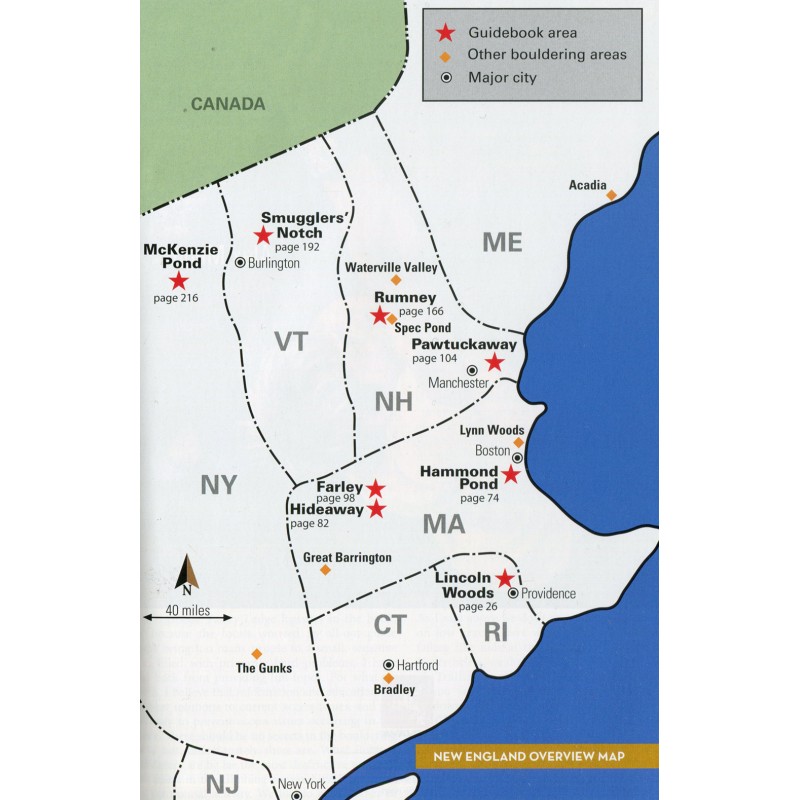 Bouldern an der Ostküste der USA. In New England gibt es einige der besten Bouldergebiete an der Ostküste der USA. Diese vollständig überarbeitete 3. Auflage von New England Bouldering bietet einen umfassenden Überblick für die Boulderspots. Gebiete, deren Namen nicht gerade geläufig sind, dafür aber meist Boulder in den Genussgraden V0 bis V5 zu bieten haben. Und damit die Suche nach den schönsten Problemen nicht zu lange dauert, gibt es zu jedem Gebiet eine Top-10-Liste.