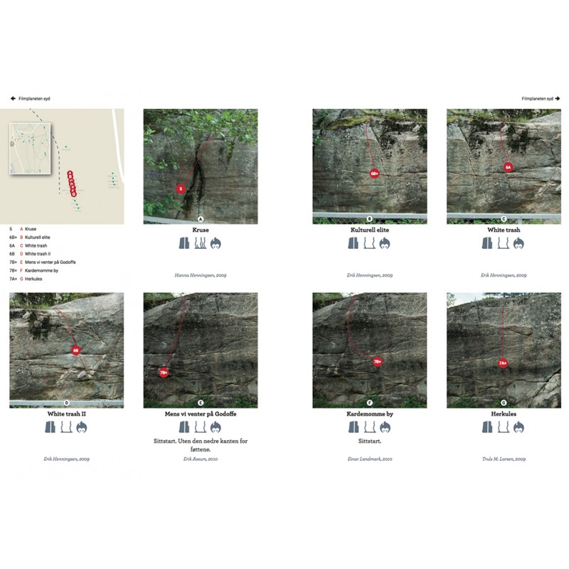 Der Führer stellt die Boulder mit Fototopos, Grafiken und Symbolen vor. Übersichtskarten geben Aufschluss über deren Lage, so dass die norwegischen Texte einen sehr geringen Teil im Buch ausmachen und der Führer trotz Sprachbariere eine gute Orientierungshilfe ist. Ein Register aller Boulder von Fb 3 bis Fb 7c+ schließt das Werk ab.