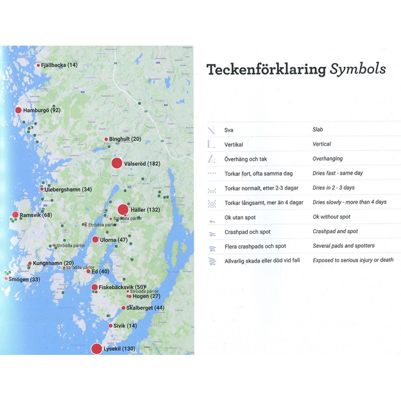 Die Verteilung der Schwierigkeitsgrade beschreiben die Autoren so: „Probleme bestehen von leichten Kinderblöcken bis Fb 8b“. Auf diese Worte folgt die Einladung, sich an den Blöcken treiben zu lassen und die schwedische Natur auf sich wirken zu lassen, denn ein Großteil der Blöcke befinden sich entlang der Küste und können in der Sommersaison leicht mit dem Strandleben kombiniert werden.