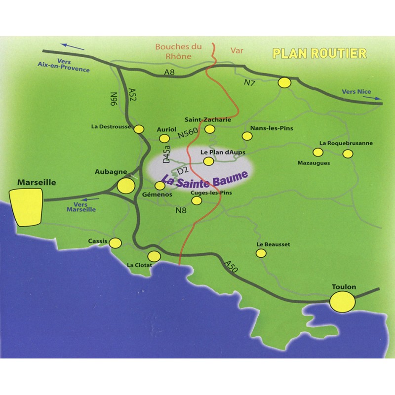 Ganz im Süden, ca. 20 Kilometer vor der Cote d’Azur, befindet sich der weithin sichtbare Bergrücken von „Sainte Baume“. Die bis zu 200 Meter hohen Wände bieten Kletterrouten in allen Schwierigkeitsgraden. Vom alpinen Ambiente bis in zu „kürzeren“ Sportkletterrouten ist alles geboten. Die kompakten Kalkwände sind meist leicht geneigt, überwiegend plattig und mit vielen Löchern und Rissen versehen. Dazwischen befinden sich immer wieder steilere Aufschwünge mit Verschneidungen und Überhängen. Die Routenlänge beträgt oft bis zu 35 Metern. Eben klettern an Routen, so wie man es sich in Südfrankreich wünscht.
