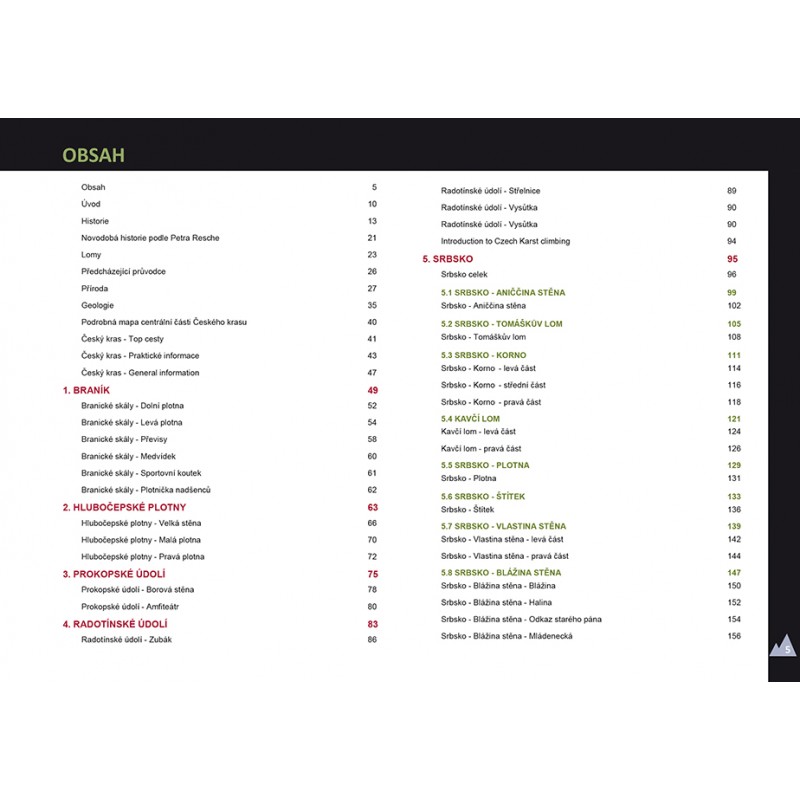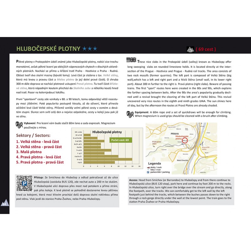 Südwestlich von Prag bzw. südöstlich von Beroun gibt es zahlreiche Sportklettergebiete im Böhmischen Karst. 13 davon, mit knapp 1400 Routen, sind in diesem Sportkletterführer zusammengefasst. Übersichtsskizzen, QR-Codes helfen bei der Anfahrt, die Orientierung am Fels wird durch Fototopos und grafische Topos erleichtert. Einleitungstexte und Zufahrtsbeschreibung sind auf englisch, Routenkommentare nur auf tschechisch. Die Schwierigkeitsverteilung der Routen ist so, dass jeder etwas in seinem Bereich findet und außer in den Wintermonaten, kann man hier immer kletttern. Ein weiterer Pluspunkt ist, dass das Gebiet in der Nähe von Prag liegt und sich so Klettern und Kultur ideal miteinander verbinden lassen.