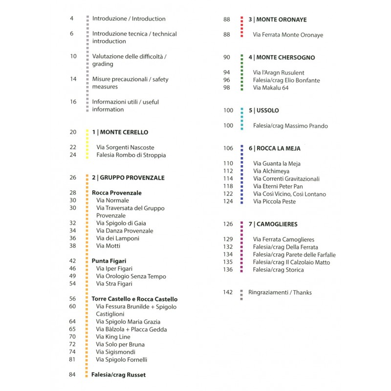 Der zweisprachige Führer stellt in Wort und Bild die Routen ausführlich vor, wobei die langen Routen eine ausführlichere Beschreibung erhalten haben und bei den Sportklettergebieten und Klettergärten die Informationen aufs wesentliche reduziert sind. Fototopos, Topos und die Texte vermitteln ausreichende Informationen für Zustieg und Begehung einer Route. Die vielen Bilder vermitteln einen weiteren Eindruck von Fels, Wand und Kletterei. Laut Aussage der Autoren sind ein paar echte Perlen bei den Routen dabei und der Fels oft "excellent".