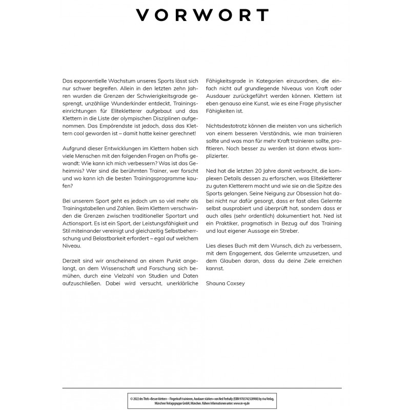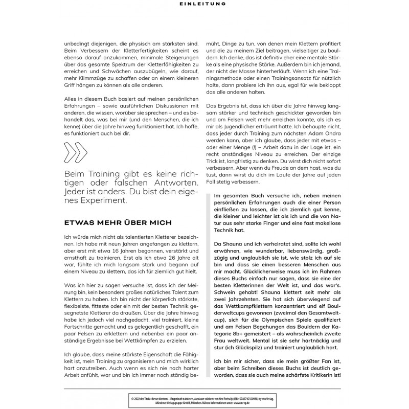 Klettern und Bouldern werden jedes Jahr beliebter. Ob in der Halle oder im Freien – um erfolgreich ganz nach oben zu kommen, ist nicht nur körperliche Fitness nötig, auch die richtige Technik und die besten Trainingsstrategien gehören unbedingt dazu. Boulderprofi Ned Feehally weiß: Für viele Sportler ist die Fingerkraft der limitierende Faktor. In diesem umfassenden Ratgeber erklärt er, wie Kletterer ihre zehn wichtigsten Werkzeuge mit einem Fingerboard einfach und effektiv trainieren können. Die über 30 Übungen kräftigen neben den Fingern auch Arme und Core, verbessern die Beweglichkeit und steigern die Ausdauer. Mit Trainingsplänen, Grifftechniken und Praxistipps von den Profis Alex Honnold, Shauna Coxsey, Adam Ondra und vielen anderen Stars aus der Kletterszene kann jeder das Maximum aus seinem Training herausholen!