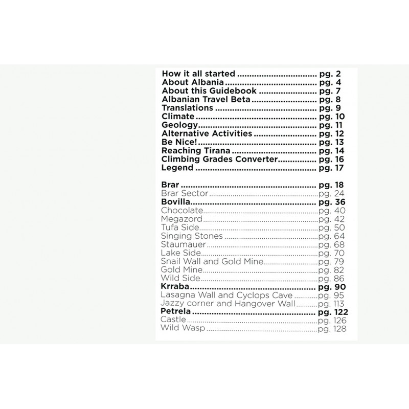 Dies ist ein neuer Führer zum Sportklettern rund um Tirana, der Hauptstadt Albaniens. Er deckt die vier wichtigsten Gebiete (Bovilla, Brar, Krraba und Petrela) ab und beschreibt über 300 Sportkletterrouten in den verschiedenen Schwierigkeitsgraden.