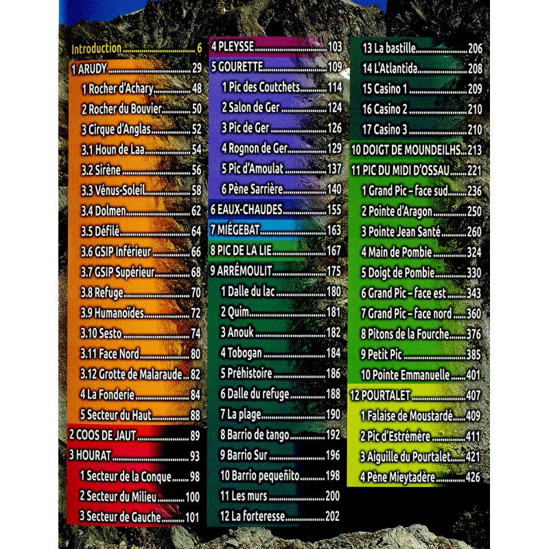 Aufgeteilt in zwölf Gebiete mit allen notwendigen Informationen in Form von Piktogrammen, Kurztexten und Topos kann das Vallée d‘Ossau aus der Sicht des Kletterers erkundet und genossen werden.