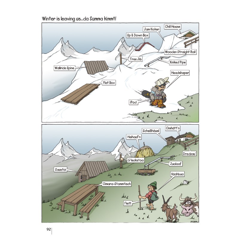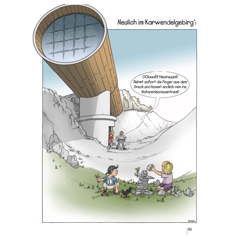Georg „Schorsch“ Sojer bewegt sich und seine Leser seit Jahrzehnten durch die alpinen Szenen. Seine Cartoons zur Welt der Berge in ihrer ganzen Komplexität mit ihren Gipfeln, Felsen und schneebedeckten Hängen sind nicht nur voller Humor, sondern manchmal auch tiefgründig lehrreich.