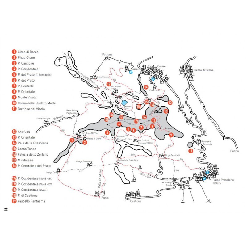 Die Routenauswahl an meist langen Routen ist groß, die an Sportkletterrouten oder Klettergärten eher die Ausnahme. Fototopos, Wandfotos und gezeichnete Skizzen helfen bei der Orientierung. Weiterführende Informationen sind den italienischen Texten (lass dir von einer Übersetzungs-App helfen) zu entnehmen.