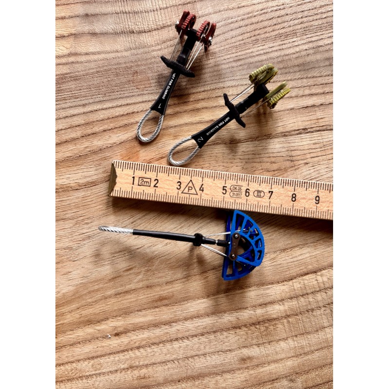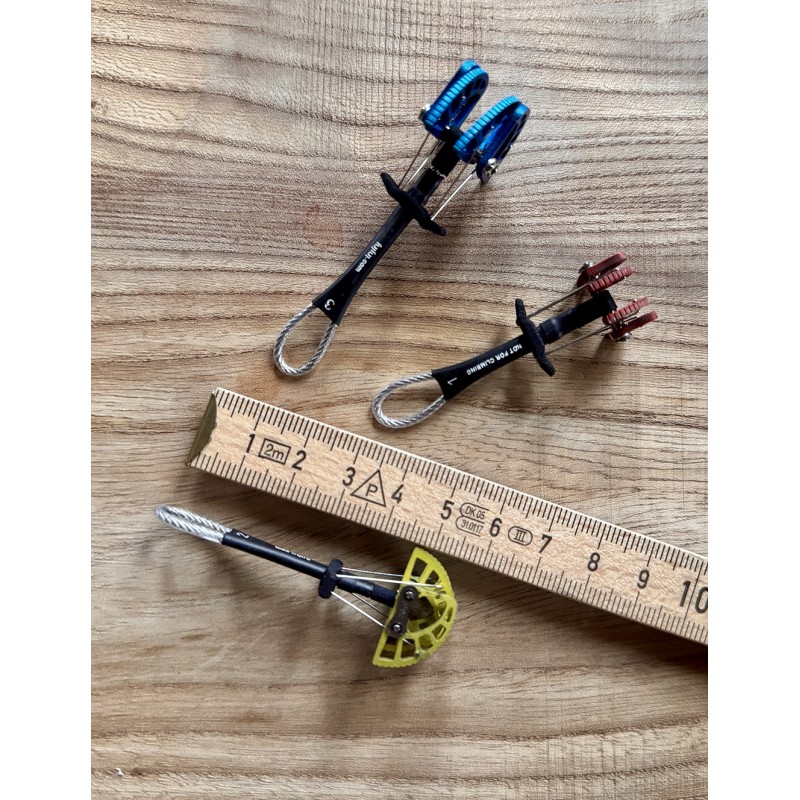 Dieser wunderschöne Schlüsselanhänger in Form eines Friend (natürlich nicht zum Klettern geeignet!) wird dich und jeden, der ihn sieht, in Staunen versetzen. Filigran gearbeitet und mit beweglichen Elementen kann der Friend tatsächlich in kleine Risse geklemmt werden. Es gibt ihn in drei Größen. Größe 1 ist, auch wenn es nur wenige Milimeter unterschied sind, deutlich feiner. Größe 2 eine Idee einfacher zu bedienen und Größe 3 überzeugt durch seine kräftige blaue Farbe und sticht wahrscheinlich am besten ins Auge.