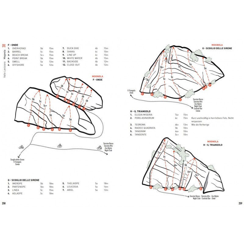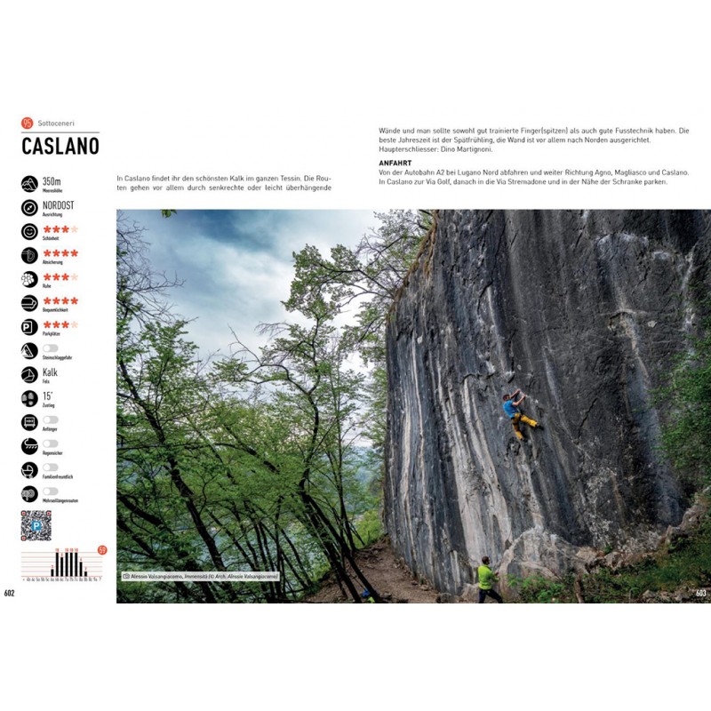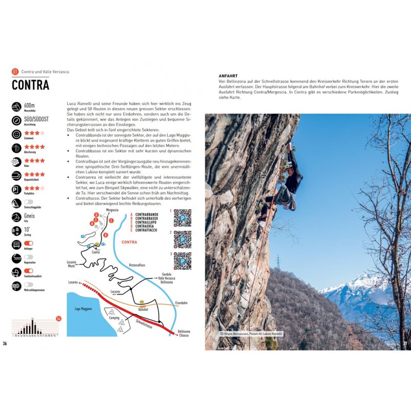 Die Gebiete werden ausführlich mit Topos, Piktogrammen, Übersichtsskizzen und kurzen Texten beschrieben. Eine Sternchenbewertung erleichtert die Auswahl unter den vielen Gebieten und die Kletterbilder vermitteln nicht nur einen zusätzlichen Eindruck von den Gebieten, sondern machen auch Lust auf den nächsten Trip ins Tessin. Wer zwischen Gotthard und Comer See Gneis und Granit unter die Finger nehmen will, ist mit diesem ausführlichen Werk gut beraten. Eine gute Alternative zum doch eher hochpreisigen (aber sehr gut gemachten) SAC-Kletterführer Tessin (siehe unten).