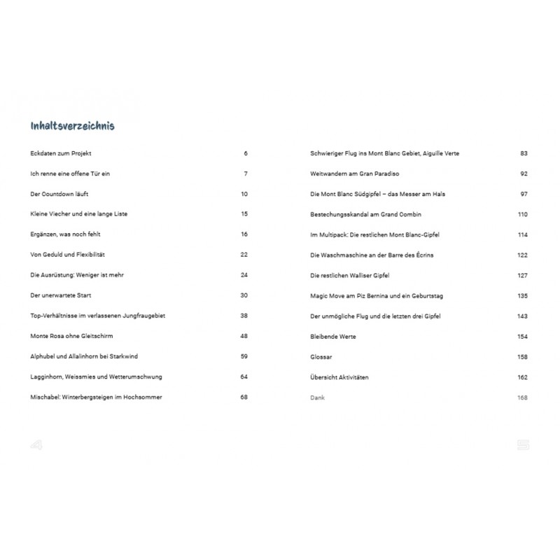 Am 10. Juni 2024 starten Chrigel Maurer und Peter von Känel von ihrem Wohnort Frutigen im Berner Oberland, um alle 82 Viertausender der Alpen zu besteigen – ausschliesslich zu Fuss und per Gleitschirm, ohne Supporter und möglichst am Stück. Der bergsteigende Gleitschirmprofi und der gleitschirmfliegende Bergprofi ergänzen sich perfekt und bilden für dieses Abenteuer das ideale Team. Nach 51 erlebnisreichen Tagen besteigen sie mit der Jungfrau ihren letzten Gipfel und fliegen von dort überglücklich zurück nach Frutigen – der Kreis schliesst sich. Die Symbiose zwischen Bergsteigen, hochalpinem Gleitschirmfliegen sowie Streckenflug ermöglicht verblüffende und ausgesprochen elegante Touren. Mit ihrem Stil beschreiten die beiden neue Wege auf alte Berge und werden immer wieder mit überraschenden Herausforderungen konfrontiert. Anschaulich, authentisch und mit einer Prise Ironie erläutert Peter von Känel die entscheidenden Erfolgsfaktoren bezüglich Vorbereitung, Taktik und Umgang mit Risiken und Fehlern. Packend schildert er die Stürme, die überwächteten Grate, das Fliegen am Limit und ihre Magic Moves, mit welchen sie als Team auf kreative Weise auch grösste Schwierigkeiten überwinden.