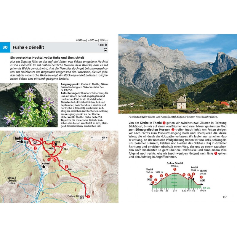 Alle wichtigen Informationen für einen perfekten Wanderurlaub in Albanien: ausführliche Wegbeschreibungen, Wanderkärtchen mit eingezeichnetem Routenverlauf und aussagekräftige Höhenprofile. Dazu kommen detaillierte Angaben zur Infrastruktur wie Einkehr- und Nächtigungsmöglichkeiten sowie Verkehrsanbindung. GPS-Daten stehen zum Download bereit.
