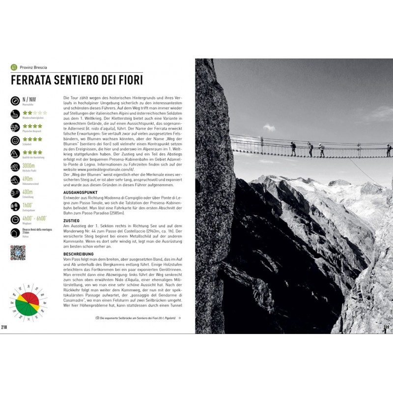 Als erfahrener Bergführer beschreibt Andrea "Bedoni" Carì die Eisenwege mit dem Ziel, allen Interessierten qualitativ hochwertige Informationen zu liefern und die Lombardei ist damit durchaus eine Alternative zu den meist recht überlaufenen Klettersteigen in Südtirol.