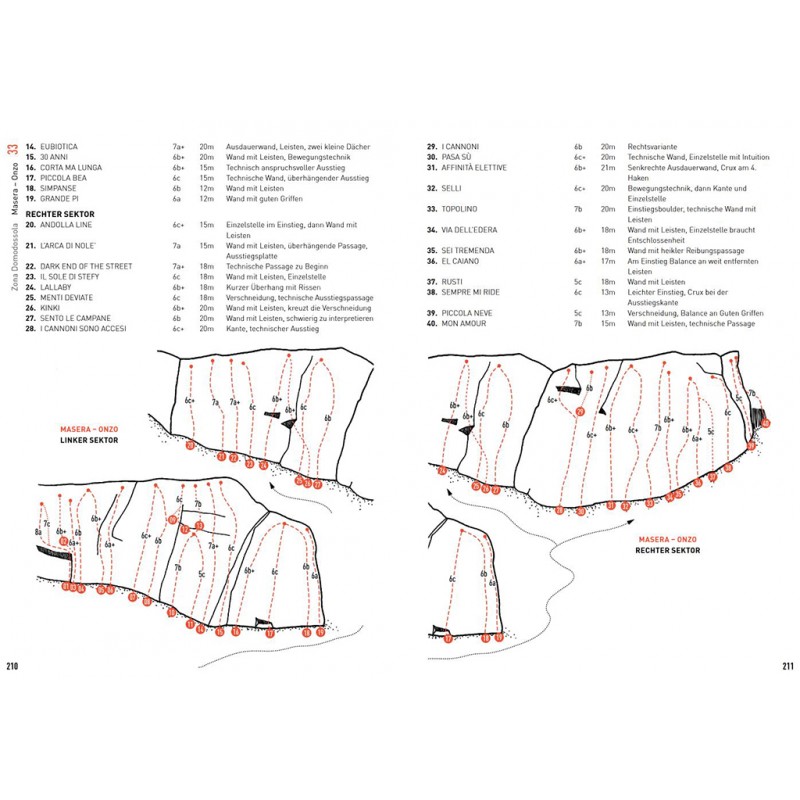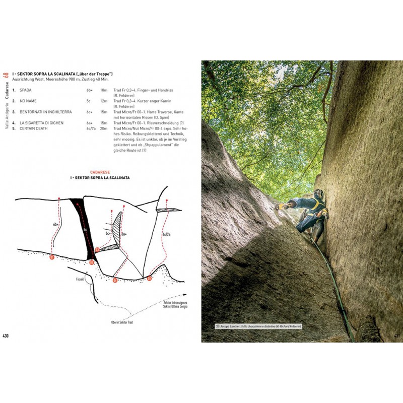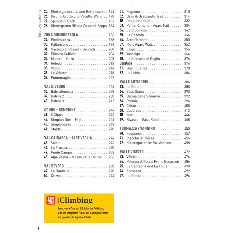In der Auflage sind die Rissklettergebiete von Cadarese (eines der besten Rissklettergebiete in Europa), Balma und Yosesigo zu finden, aber auch die neuen Tradgebiete wie Ossolandia, die immer mehr Anhänger verzeichnen.