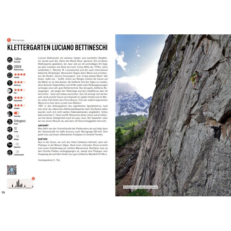 Aber auch die klassischen Gebiete von Macugnaga, Simplon, Croveo, Formazza und Vigezzo fehlen nicht. Und ja, auch die eine oder andere vergessene Wand holen wir wieder ins Bewusstsein. Mit ihrer Vielzahl an Routen und der Vielfalt an Felswänden ist diese Region mittlerweile weit über die italienische Grenze hinaus bekannt.
