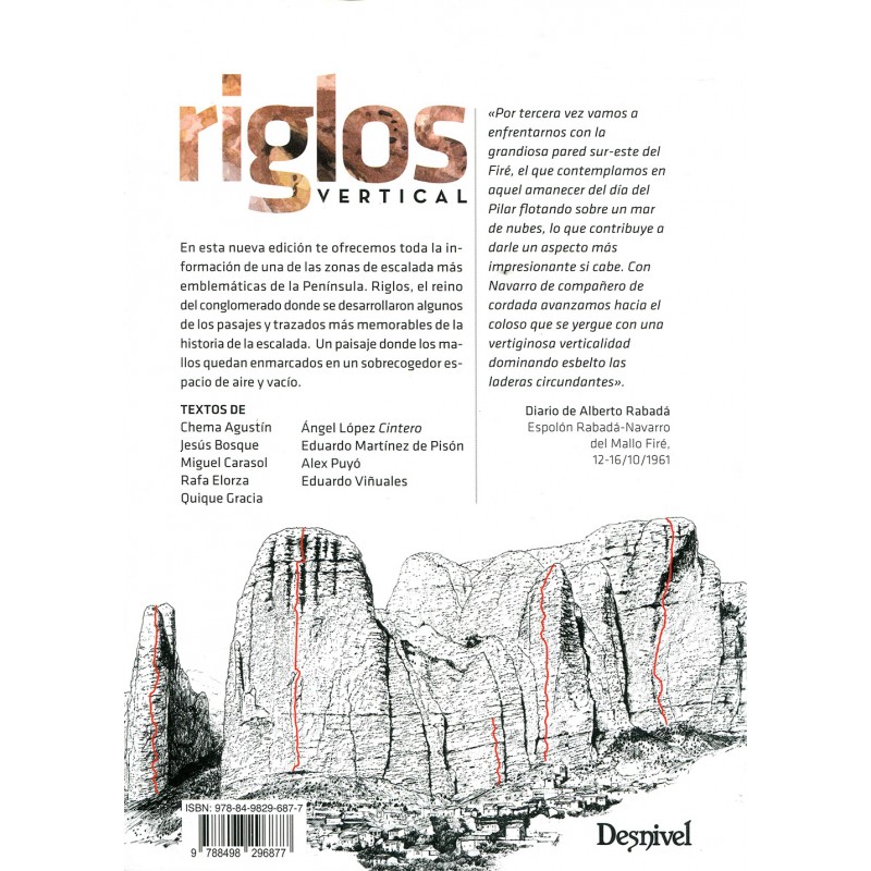 Welcher Kletterer möchte nicht mal die Route "Fiesta di los Bizeps" klettern? Aber auch wenn diese 7 Seillängen dann doch zu anspruchsvoll sind, die steinernen Flammen über der Ortschaft Riglos sind faszinierend und bieten auch viele einfachere Routen. Der Führer stellt die Gebiete, Sektoren und Routen anhand von Übersichtsskizzen, Piktogrammen, kurzen Texten, Ausrüstungsempfehlungen und aussagekräftigen Topos vor, so dass einem langen und unbeschwerten Aufenthalt in Riglos nichts im Wege steht. Das die Autoren einen hang zur Nostalgie haben zeigt nicht nur das Titelbild, sondern auch die abgebildeten Auszüge von Wandbüchern und alten handgezeichneten Toposkizzen.