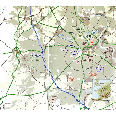 Dieses Buch beschreibt die 21 Wege rund um den Wald von Fontainebleau und eine unmarkierte Route in der Stadt Fontainebleau.