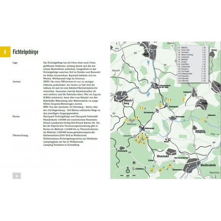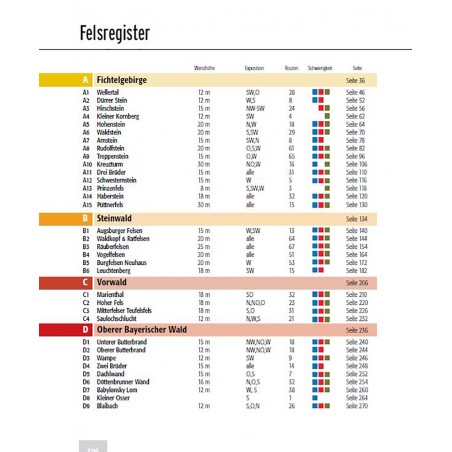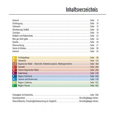 Der Osten Bayerns bzw. die in diesem Führer vorgestellten Gebiete werden klettertechnisch in folgende Teilbereiche gegliedert: Fichtelgebirge, nordöstlich von Bayreuth, Steinwald im Osten und das Hauptgebiet der Bayerische Wald östlich von Regensburg bis nach Passau. Damit umfasst der Führer ein recht großes Gebiet und insgesamt werden über 70 verschiedene Klettermöglichkeiten beschrieben und machen reichlich Lust auf den nächsten Klettertrip, in die Region mit den langen Wintern. Die Kletterei findet meist in Gneis und Granit statt und ist vom Charakter sehr unterschiedlich. Neben vielen Bildern und übersichtlichen Topos gibt es auch nützliche Vorschläge für die Gestaltung von Rest-Days sowie Informationen über die Klettergeschichte, Persönlichkeiten und vieles mehr.