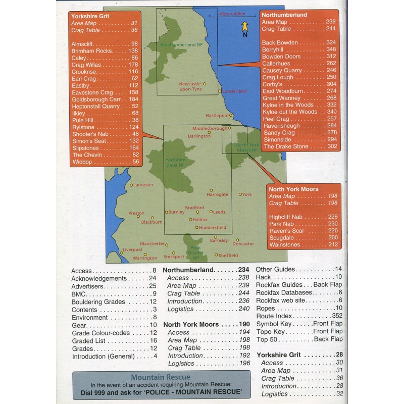 Die weiten, sanften Hügel, Aufschlüsse und Steinbrüche aus Sandstein und Gritstone, die den Norden Englands durchziehen, sind seit langem bei den Einheimischen beliebt, obwohl die Besucher seltener sind, außer an den wenigen bekannteren Klippen. Obwohl das Gebiet nicht so weitläufig ist wie der Peak District, gibt es hier viele schöne Felsen und versteckte Klassiker, die auf den fleißigen Entdecker warten. Dieser Führer wird Kletterern helfen, das Beste aus diesem großartigen und abwechslungsreichen Gebiet herauszuholen. Das Buch ist ein Auswahlführer, der es dennoch schafft, mehr als 2350 Routen, verteilt auf 44 Felsen, zwischen seine Buchdeckel zu packen. Das Hauptaugenmerk liegt auf Routen aller Schwierigkeitsgrade von Mäßig bis E9, aber auch die besten Boulder werden beschrieben.