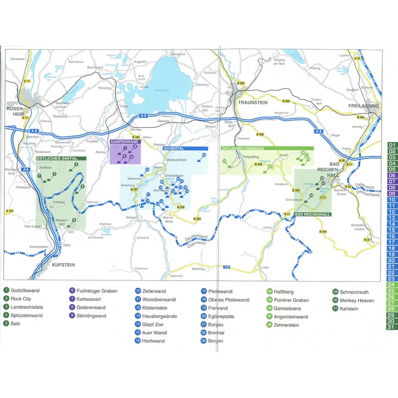 In der neuen Auflage des Sportkletterführers werden auf 576 Seiten 31 Sportklettergebiete von Rosenheim bis Salzburg beschrieben, unter anderem auch Felsen, die erstmalig und exklusiv vorgestellt werden. Mit 2200 so aktuell wie derzeit kein anderer Kletterführer. Topaktuelle Infos, zweisprachige Gebietseinleitungen, Topos und Zustiegsskizzen sowie zahlreiche Piktogramme, QR-Codes, Griffregister usw. ermöglichen eine schnelle Übersicht und Orientierung. Der Führer hat das DAV Gütesiegel "Naturverträglich klettern". Die moderne grafische Gestaltung verleitet den Nutzer dieses Kletterführers immer wieder zum Schmökern, um mögliche neue Kletterziele herauszusuchen.