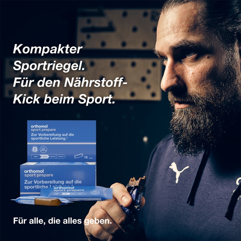 Im Klartext: Der Orthomol sport prepare ist keine als Fitnessfood getarnte Süßigkeit mit 08/15-Rezeptur, sondern ein echter Sportriegel für ehrgeizige Athlet:innen mit hohem Leistungsanspruch. Ob vor herausforderndem Ausdauersport, anspruchsvollem Teamsport oder intensivem Krafttraining – auf diesen Sportriegel ist 100 % Verlass!