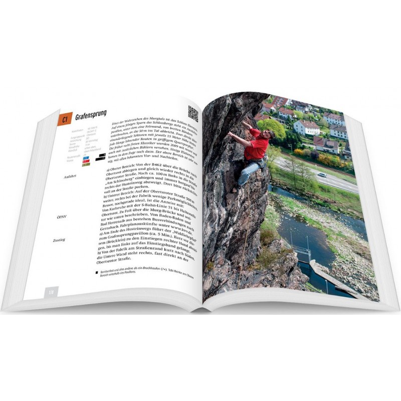 Doch auch die anderen im Band beschriebenen Gebiete lohnen immer einen Besuch: Für die rauen Granitzinnen des Bühlertals braucht man ein ziemlich dickes Fell, an der Gausbacher Straßenwand im Murgtal kann man quasi mit dem Auto an den Einstieg fahren, in Bad Herrenalb hingegen mit der S1 aus Karlsruhe. Im Nagoldtal gibt's leckeren Sandstein und bei Schramberg den famosen Falkenstein.