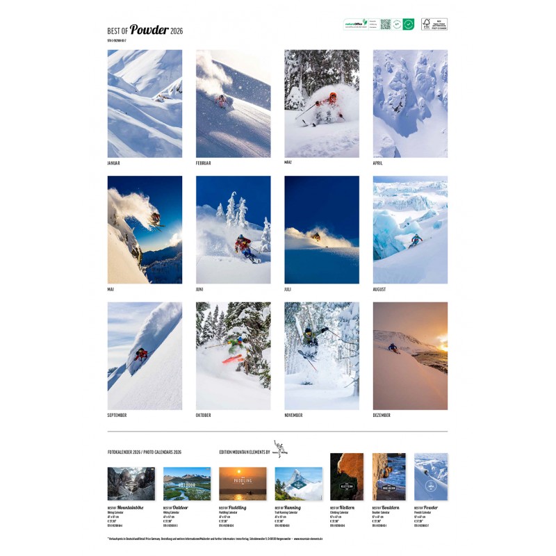 Der neue Powder-Kalender ist da! Die Bilder sind vollformatig über die gesamte Kalendergröße und kommen so noch besser zur Wirkung. Der einmalige Freeski-Kalender bietet Monat für Monat Freerideaction und powder, so das man sich sofort die Bretter unter die Füße schnallen möchte. Wer noch kein Fan ist, wird es spätestens, wenn er den XXL-Kalender aus der Verpackung zieht.