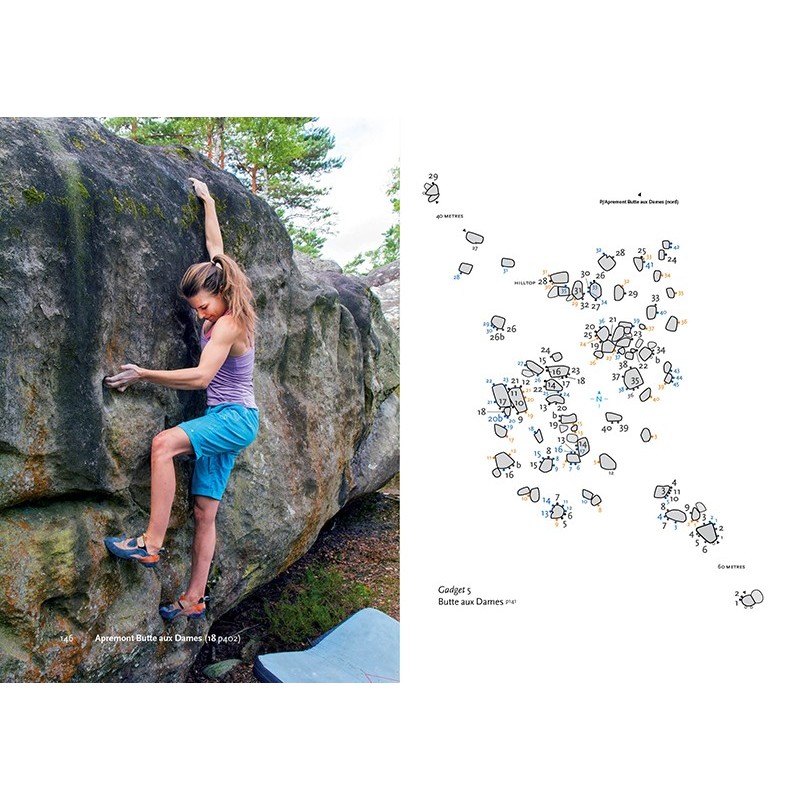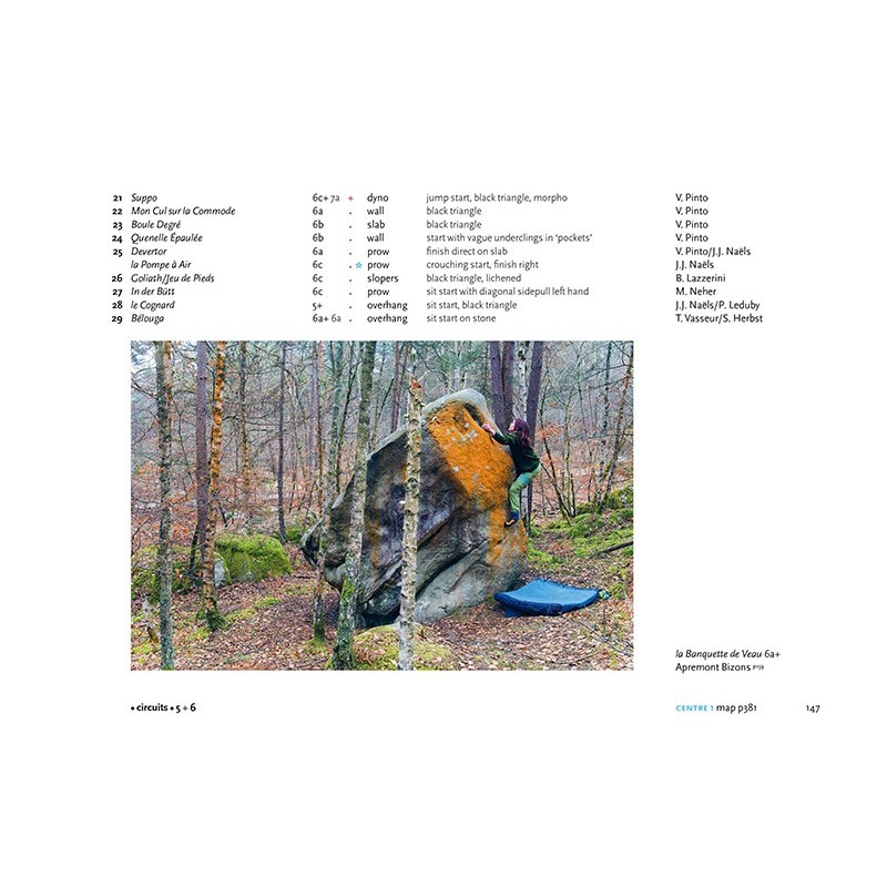 "ENDLICH" werden viele sagen, die den tollen Boulderführer 7+8 straight ups Fontainebleau kennen, aber leider in Bleau bei keinem der Probleme vom Boden abheben. Bart van Raaij hat in gleicher Aufmachung wie bei seinem ersten Boulderführer nun einen für den Schwierigkeitsbereich 5+6 herausgebracht. Die Probleme verteilen sich rund um die Stadt Fontainebleau und sind auf 53 Teilgebiete aufgeteilt. Gebiete und Boulder sind so beschrieben, dass sie leicht zu finden sind und der Ablauf klar zu erkennen ist. Mit 5+6 haben auch die nicht ganz so extremen Boulderer endlich die Möglichkeit, Bleau auf eine ganz neue Art zu entdecken.