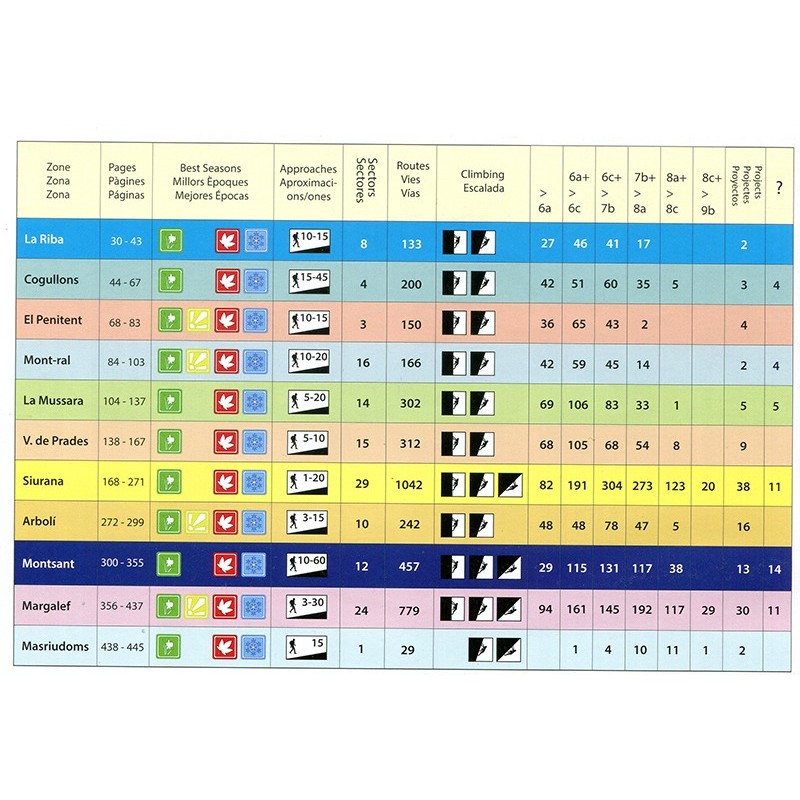 Die Gegend ist ein Traum für Kletterer und bietet herrliche Routen inmitten einer spektakulären Landschaft. Es werden 11 verschiedene Gebiete, einschließlich Siurana, Margalef, La Mussara und Montsant und über 4.800 Routen (zum Vergleich: 2.500 in der 1. Auflage, 3.800 in der 2. Auflage) in allen Schwierigkeitsgraden vorgestellt. Die ausführlichen Gebietsbeschreibungen sind in englisch, die wichtigsten Parkplätze werden ergänzend mit GPS-Koordinaten angegeben, Fototopos und Piktogramme erleichtern die Orientierung vor Ort. Alle Routen sind auf hochwertigen Fototopos abgebildet, zusammen mit Routenname, Länge und Schwierigkeitsgrad.