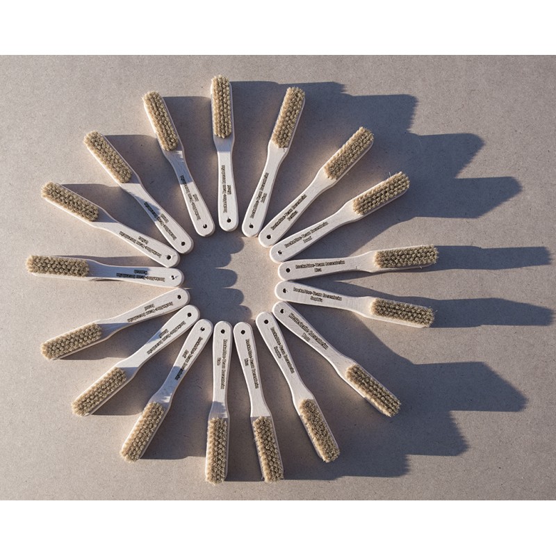 Wir bieten die Bürsten mit oder ohne Lasergravur an. Das heißt, optional bieten wir dir die Möglichkeit, dass wir deinen Namen oder einen anderen Text auf die Innenseite des Griffes lasern.