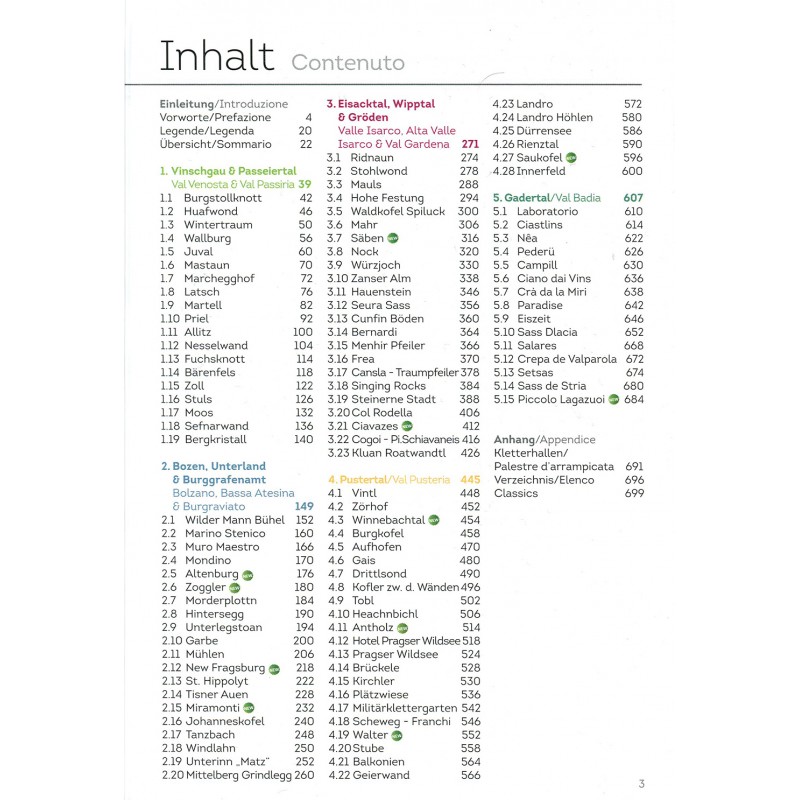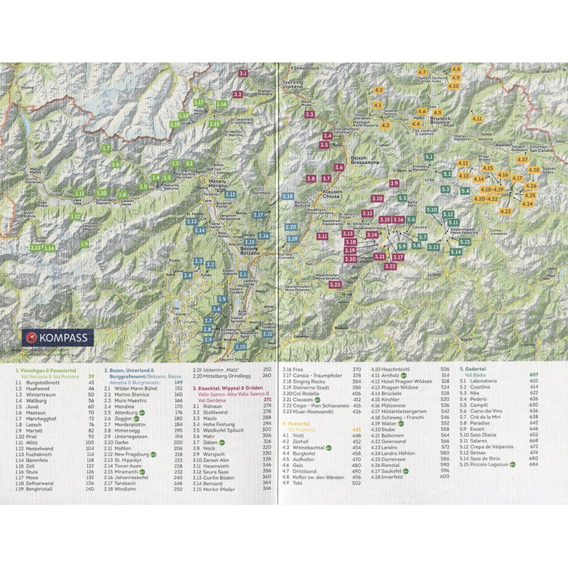 Klettergebiete: -Vinschgau & Passeiertal -Bozen, Unterland & Burggrafenamt -Eisacktal, Wipptal & Gröden -Pustertal -Gadertal (Val Badia)
