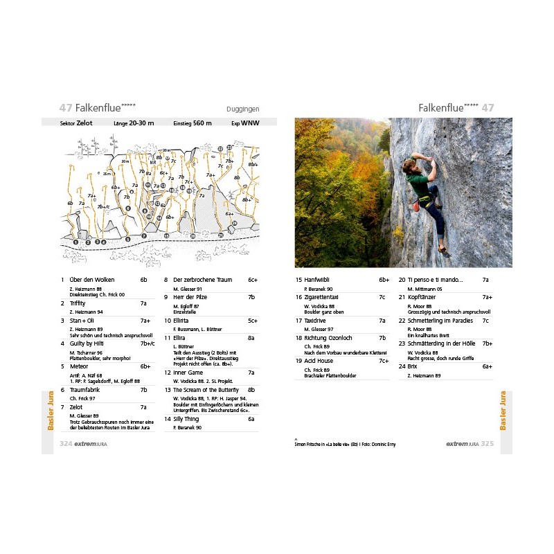 51 Gebiete zwischen Basel und Bern werden in diesem Führer vorgestellt, der die Extrem-Reihe des Filidor-Verlags abrundet und somit auch diese Region "extrem" gut beschreibt. Die vorgestellten Felsen sind eine strenge Auswahl aller Gebiete des Juras, die "Crème de la Crème" sozusagen, denn nicht alle Felsen an denen Routen existieren sind fest, andere wiederum sind stark abgeklettert, so dass diese keinen Spaß mehr machen. So bietet die Auswahl tolle Felsen, gemütliche Plätze und haufenweise harte Routen, die in gewohnt brillanter Känel-Qualität beschrieben werden.