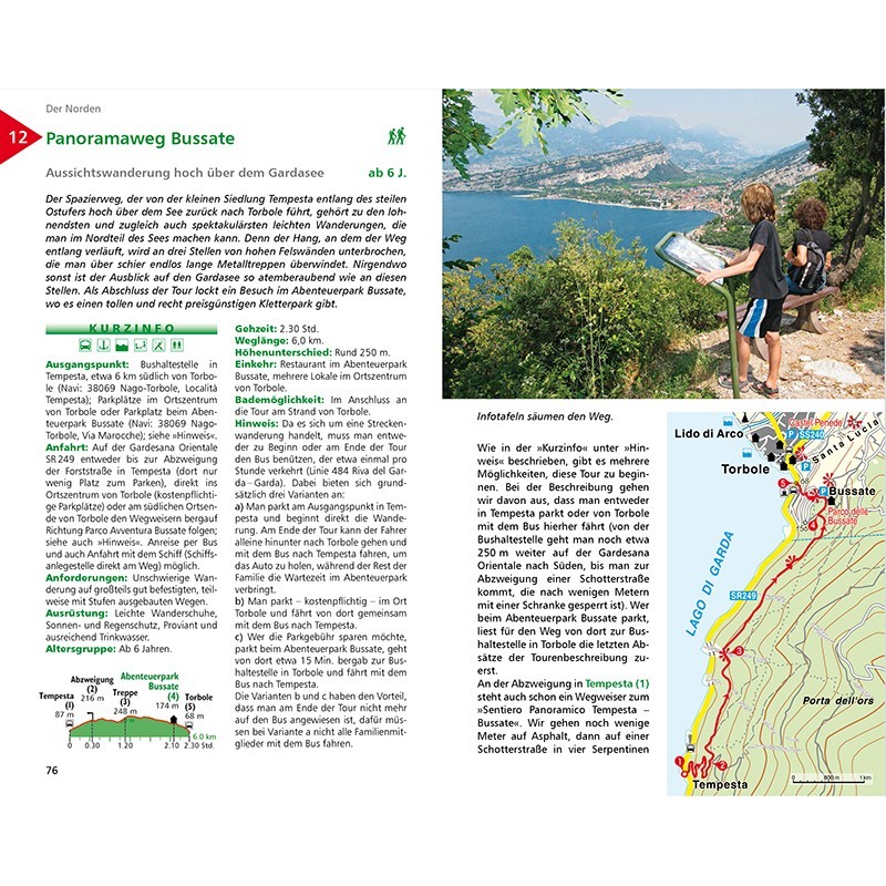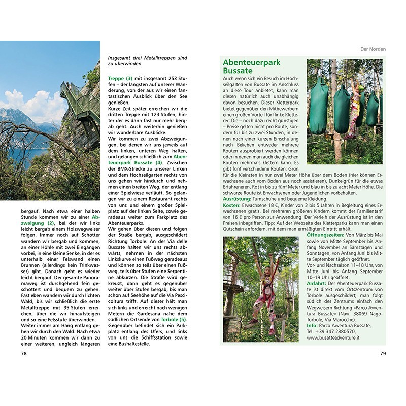Der Gardasee ist ein Klassiker für den Kletter- oder Familienurlaub. Mediterran gelegen zwischen hohen Bergen, lässt sich unglaublich viel unternehmen. Felsige Gipfel und spannende Schluchten lassen sich hier erwandern, familientaugliche Klettersteige ausprobieren und die vielen Burgen »erobern«. 40 der schönsten Aktivitäten, bei der es immer etwas zu erleben gibt, werden in diesem Buch vorgestellt. Dazu gehören abenteuerliche Wanderungen, Besuche in Kletter- und Tierparks ebenso wie beschauliche Bootsfahrten, verzauberte Gärten und natürlich traumhafte Badeplätze – am Gardasee selbst oder an herrlichen Bergseen. Daneben lockt eine Vielzahl an Freizeitvergnügungen wie Aquaparks mit spektakulären Rutschen und in Vergnügungsparks und dem von Kindern heiß geliebten »Gardaland«. Die Ziele sind schnell von den Badeorten am Ufer des Gardasees erreichbar, sodass sich nach einem Ausflug noch genug Zeit findet, um den Tag mit einem Sprung ins Wasser oder einem »Gelato« an der Strandpromenade zu beschließen. Bei allen Programmpunkten sind Altersempfehlungen sowie Angaben über den nötigen Zeitaufwand und gegebenenfalls anfallende Kosten angeführt. Die nach Schwierigkeit und konditionellen Anforderungen eingeteilten Wanderungen werden ausführlich beschrieben und durch detaillierte Karten und Höhenprofile ergänzt.