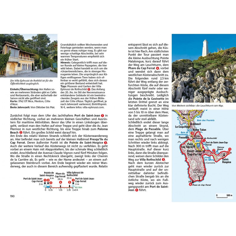 Die Côte d’Azur offenbart eine atemberaubend schöne Natur - hoch oben in den Seealpen und natürlich direkt am Meer und an den Küsten. Der Wanderführer stellt Touren für jeden Geschmack vor: gemütliche Spaziergänge bei Marseille, St. Tropez, Cannes und Nizza, Wanderungen im Nationalpark Calanques, Strandwanderungen mit Badepause und abenteuerliche Bergtouren. Auf den zahlreichen Inseln des Parc National de Port-Cros lassen sich herrliche Wanderungen unternehmen. Natürlich darf auch die berühmte Durchquerung der Calanques nicht fehlen. Und wer die herrliche Kombination von Bergen und Meer noch länger genießen möchte, kann die Côte d'Azur auf einer mehrtägigen Rundreise in 15 Etappen erwandern.