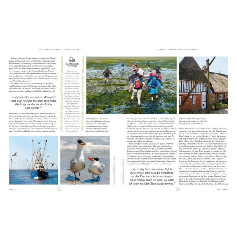 40 unvergessliche Wandertouren führen auf den höchsten Gipfel des Landes, von Hallig zu Hallig, zu den Hexen im Harz, in die Felsenwelt an der Elbe, zu den Burgen am Rhein, durch die Weinberge an der Mosel und verwunschene Feenlandschaften.