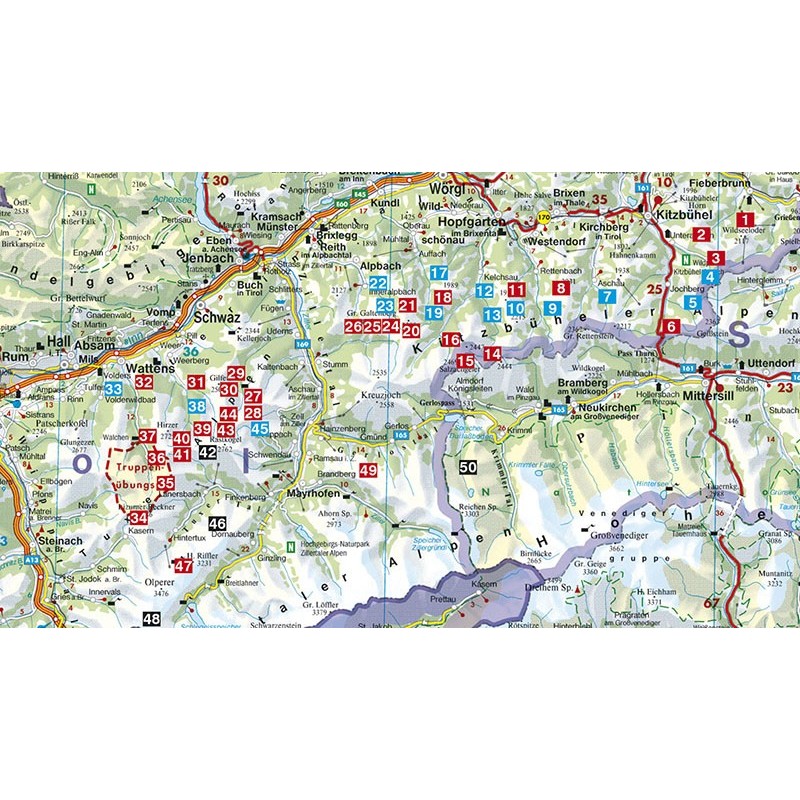 111 Farbabbildungen, 50 Tourenkärtchen im Maßstab 1:50.000, eine Übersichtskarte im Maßstab 1:325.000