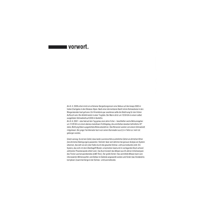 Dieses Buch ist ein Muss für alle die Schnee und ihr Leben lieben: der topaktuelle Stand des Lawinenwissens! Mit dem großen Erfolg des innovativen Handbuches "Lawine" gelang es den beiden international renommierten Tiroler Lawinenwarnern Rudi Mair und Patrick Nairz vor fünf Jahren, das von ihnen entwickelte Konzept der Gefahrenmuster in der Lawinenkunde einzuführen und zu etablieren. Die Erkenntnis, dass eigentlich zwei Handvoll immer wiederkehrende Gefahrenmuster für einen Großteil der Lawinenunfälle verantwortlich sind und dass - bei entsprechender Kenntnis und angemessenem Verhalten - Unfälle dieser Art vermeidbar wären, hat europaweit zu neuen Standards in der Lawinenkunde geführt. Diese komplett überarbeitete und aktualisierte Neuauflage trägt der Entwicklung der letzten fünf Jahre Rechnung und dokumentiert den aktuellen Stand internationalen Lawinenwissens: Nicht zuletzt ausgelöst durch das Konzept der Gefahrenmuster haben sich die europäischen Lawinenwarndienste auf die länderübergreifende Darstellung von fünf Lawinenproblemen (Neuschnee, Triebschnee, Altschnee, Nassschnee und Gleitschnee) geeinigt, die im Laufes eines Winters immer wieder auftreten. Diese Probleme werden nun ebenfalls vorgestellt und in den 10 entscheidenden Gefahrenmustern vertieft. Die Analyse aktueller Unfalldaten - alle Unfallbeispiele wurden aktualisiert! - bereitet das Wissen in bewährter Form optimal auf. Die komplett aktualisierte Ausgabe des Bestsellers: mit neuen Unfallanalysen