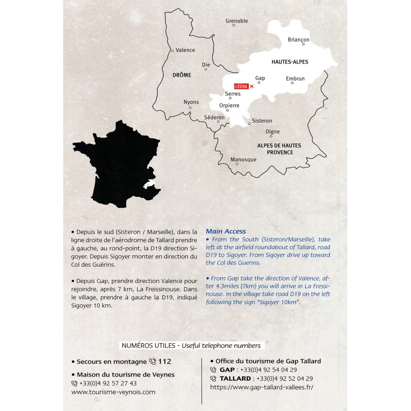 Im Eigenverlag ist dieser 168 Seiten starke Führer über das französische Topgebiet Céüse erschienen. Plus 20 Seiten in der neuen Auflage zeigen auf, dass die Entwicklung des Top-Klettersports Céüse (trotz schweißtreibenden Zustieg) noch lange nicht abgeschlossen ist. Mit klaren Fototopos und kurzen Kommentaren zu einigen der Routen (auf Französisch), bietet der Führer genau die Informationen, die ein Kletterer vor Ort benötigt. Allgemeine Texte sind ins Englische übersetzt und ein paar zusätzliche Fotos vermitteln darüber hinaus einen Eindruck der Klettereien.