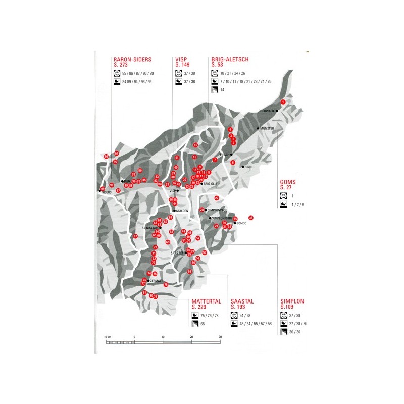 Das Wallis gehört zu DEN Urlaubsregionen in der Schweiz und das nicht ohne Grund: traumhafte Landschaften und ein unglaubliches Potenzial für die unterschiedlichsten Freizeitaktivitäten befinden sich dort auf engstem Raum. Inmitten der höchsten Berge präsentieren sich auch unzählige Kletterrouten. 2000 Stück in 99 Klettergebieten werden in dem vorliegenden Führer beschrieben, bei denen auch 250 Mehrseillängenrouten dabei sind, die eine Länge von 800 Metern erreichen. Die Aufmachung des Führers lässt keine Wünsche offen. Präzise Texte, Lageskizzen und (Foto-)Topos sowie mit Piktogrammen versehene Routenauflistungen vermitteln einen guten Eindruck von den entsprechenden Unternehmungen.