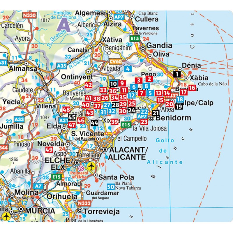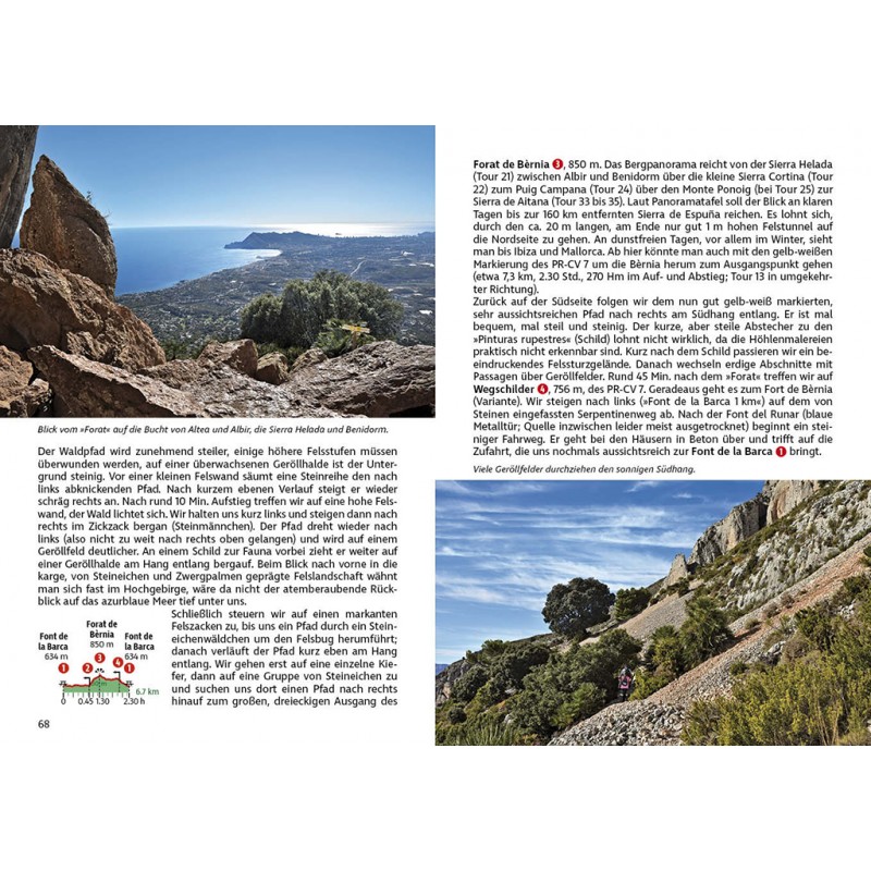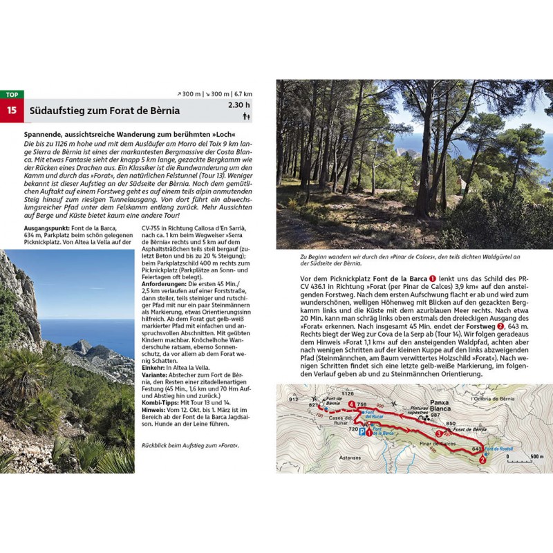 Von entspannten Spaziergängen am Meer über erfrischende Wanderungen entlang von Flüssen und durch Schluchten bis hin zu aussichtsreichen Gipfeltouren reicht die Auswahl. Kurze Ausflüge in der Nähe beliebter Ferienorte wie Dénia, Calp und Benidorm wechseln sich ab mit anspruchsvolleren Touren in entlegene Bergregionen der Provinz Alicante und auf die höchsten Berge der Iberischen Halbinsel. Wanderhighlights sind versteckte Quellen, faszinierende Höhlen und Täler voller Mandel- und Olivenbäume. Burgen aus maurischer Zeit säumen den Weg. Sehenswert sind auch die beiden größten Palmengärten der Welt in Elche und Orihuela. Die Wanderungen an der Costa Blanca bieten einzigartige Natur- und Kulturerlebnisse!